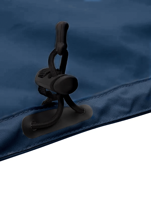 The Raindek® is a quick and easy solution; it’s a raincoat for the legs. It will keep the legs, crotch and cushion dry. This version cuddles the knees. It is very easy to put on and take off, it takes only about a minute.